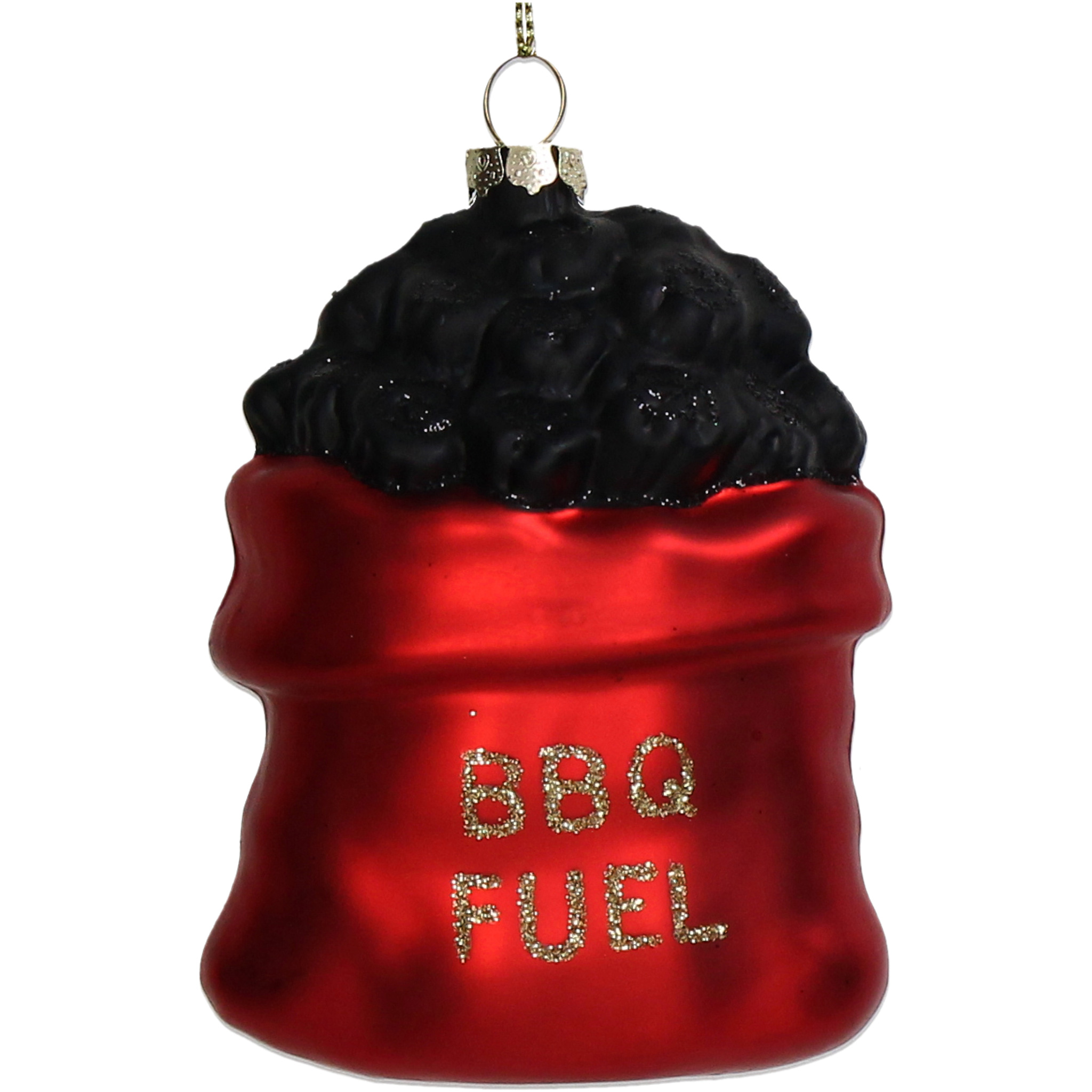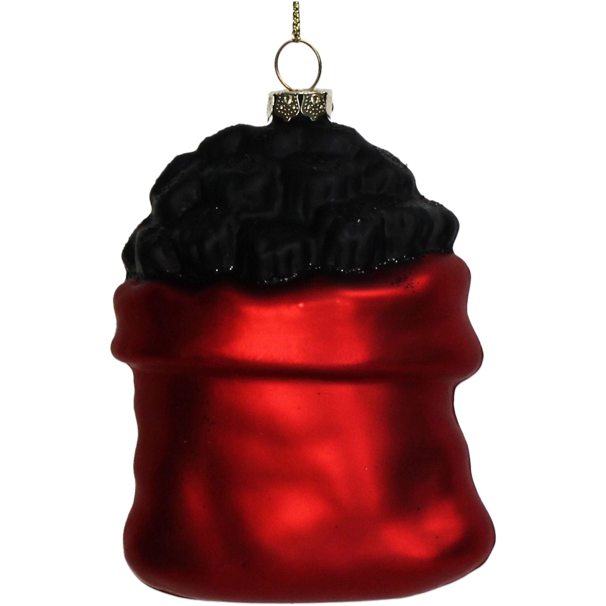 PRODUKT: Weihnachtsbaum Anhänger - Sack Kohle zum Grillen / MATERIAL: Glas / GRÖSSE (HxLxB): ca. 10,2 x 7,1 x 5,2 cm / INHALT: 1 Christbaumfigur / FARBE: rot - schwarz - gold