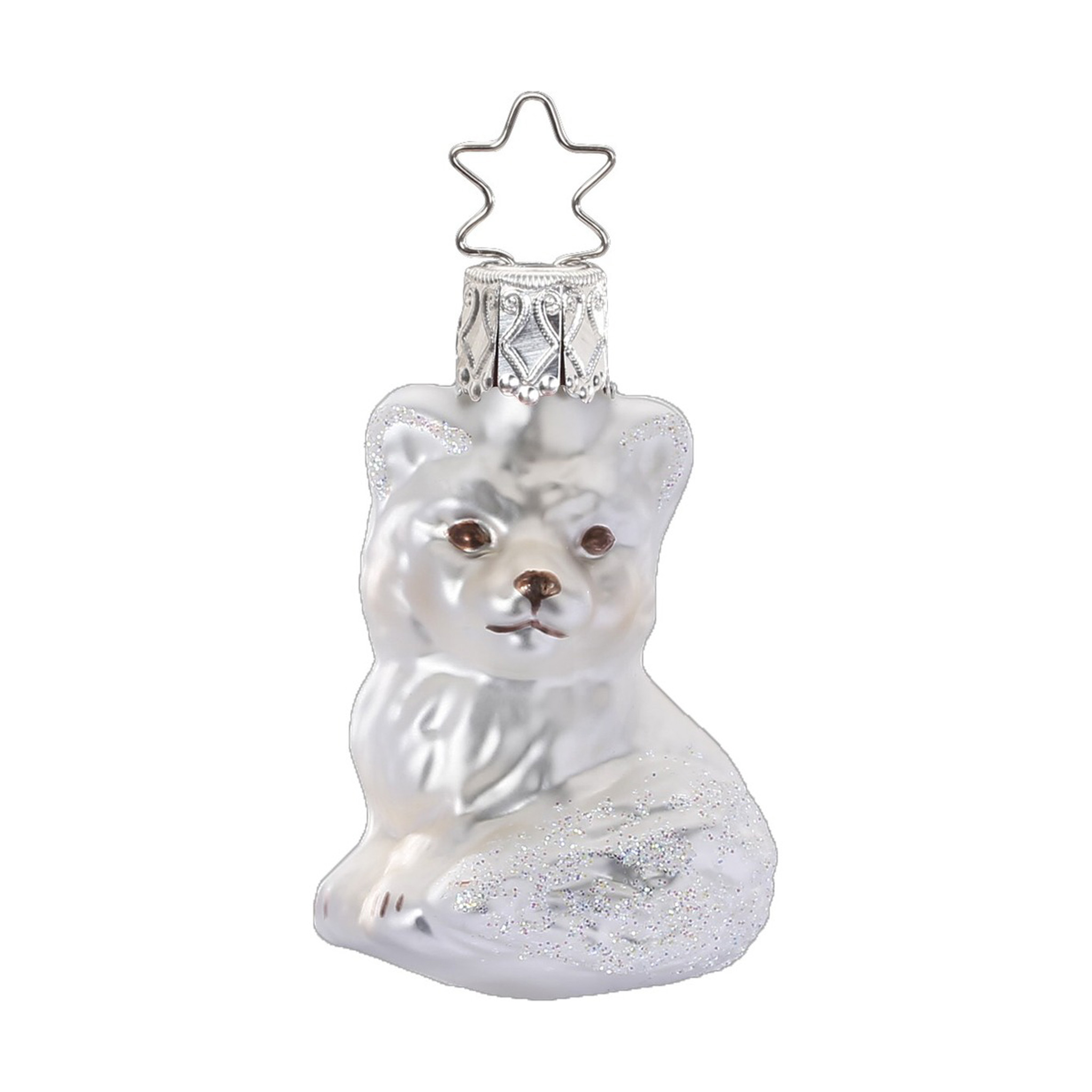 Christbaumschmuck kleiner Polarfuchs Glas 5.5cm weiß, 1 Stück