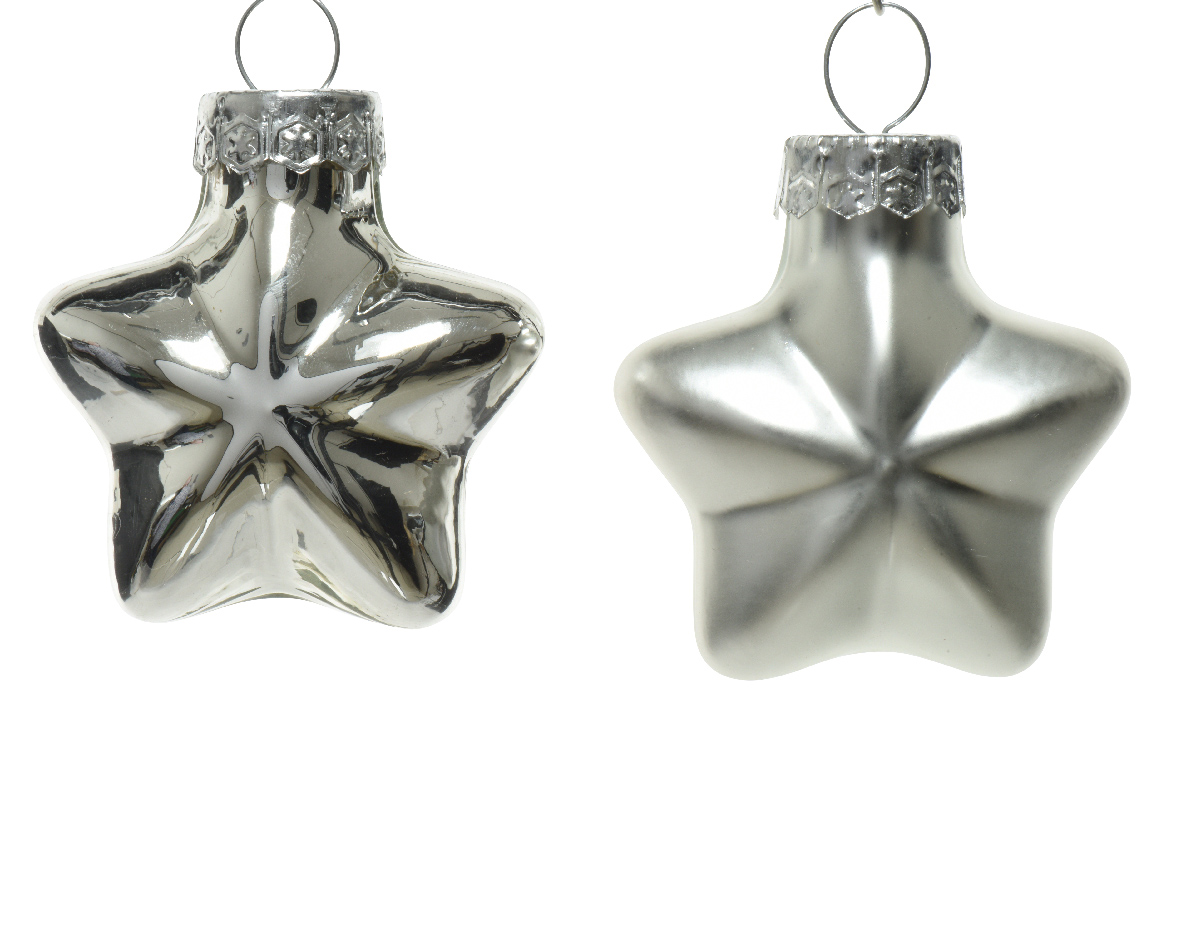 Christbaumschmuck Sterne 4cm Glas 12 Stück - Silber