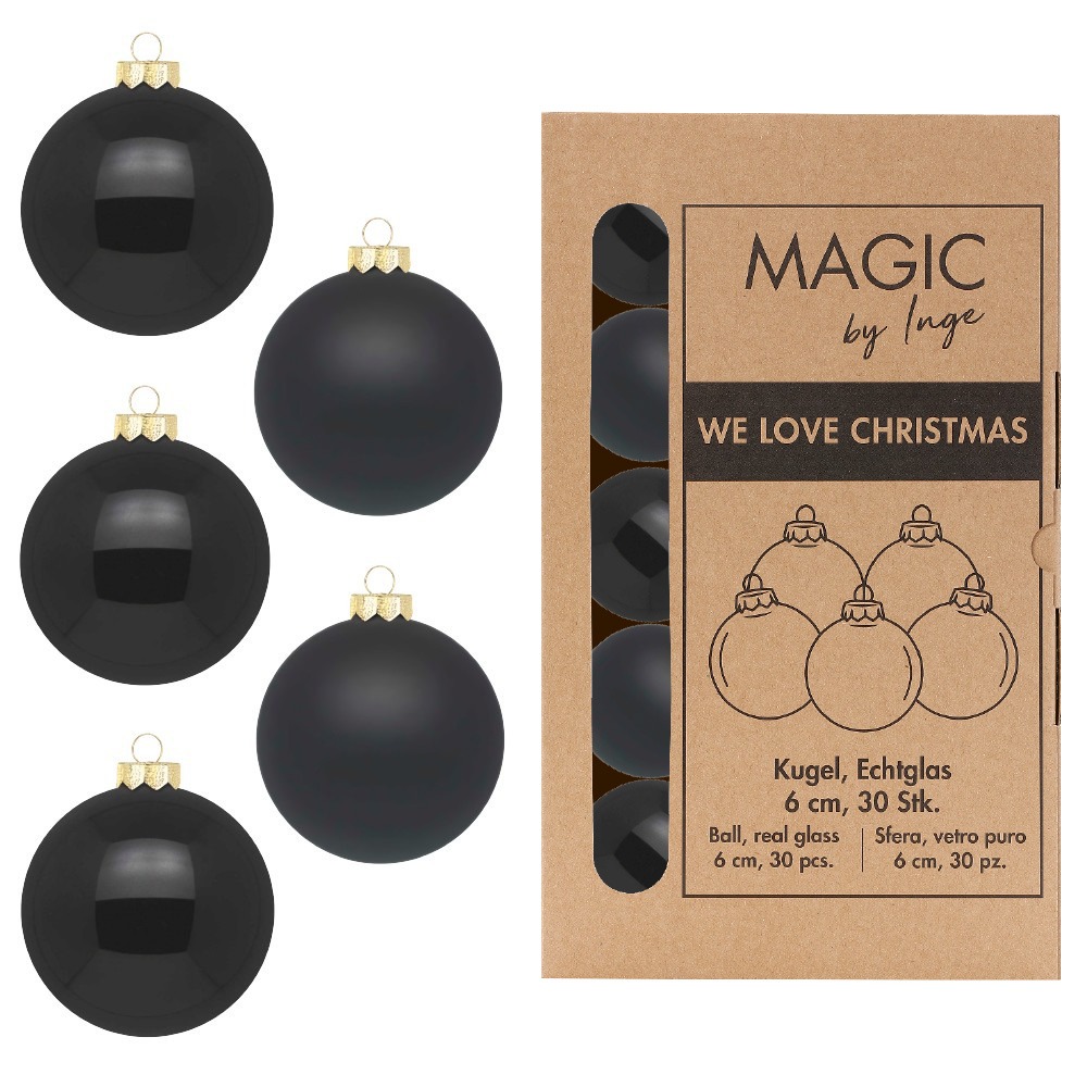 Weihnachtskugeln Glas 6cm 30 Stück - Ebony Black