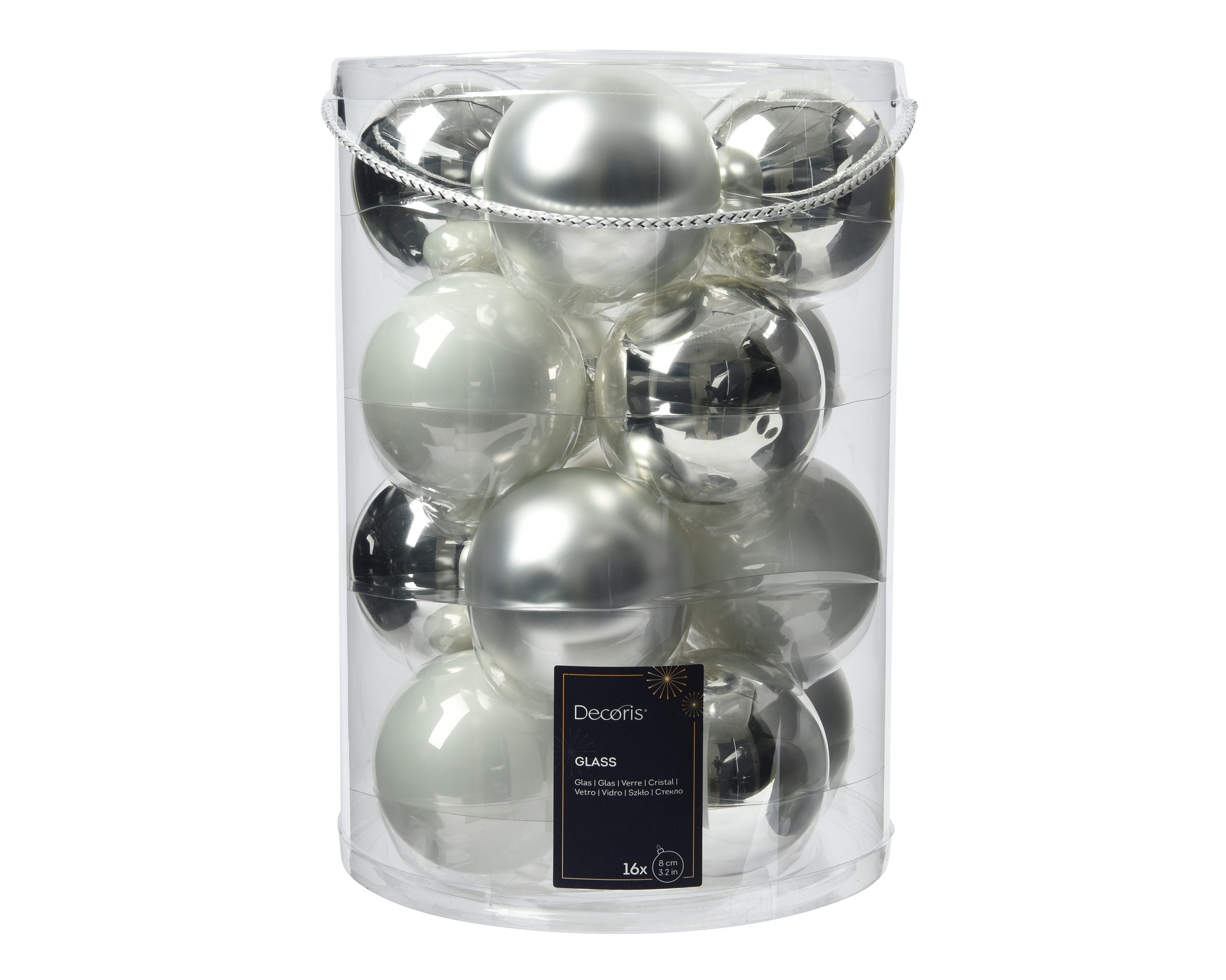 Weihnachtskugeln Glas 8cm 16 Stück - Silber / Weiß Mix