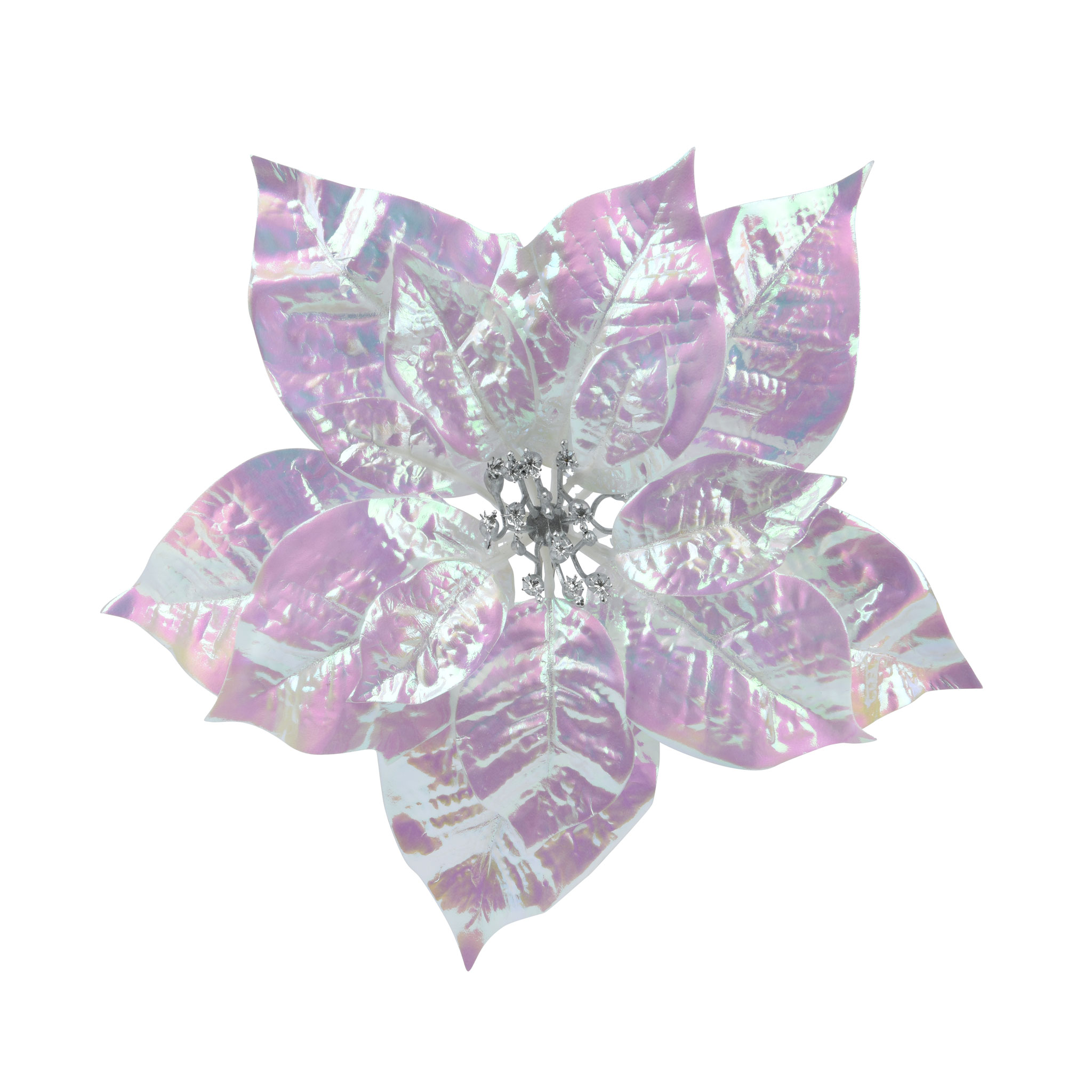 Weihnachtsstern Blüte künstlich 25cm mit Clip Weiß Irisierend