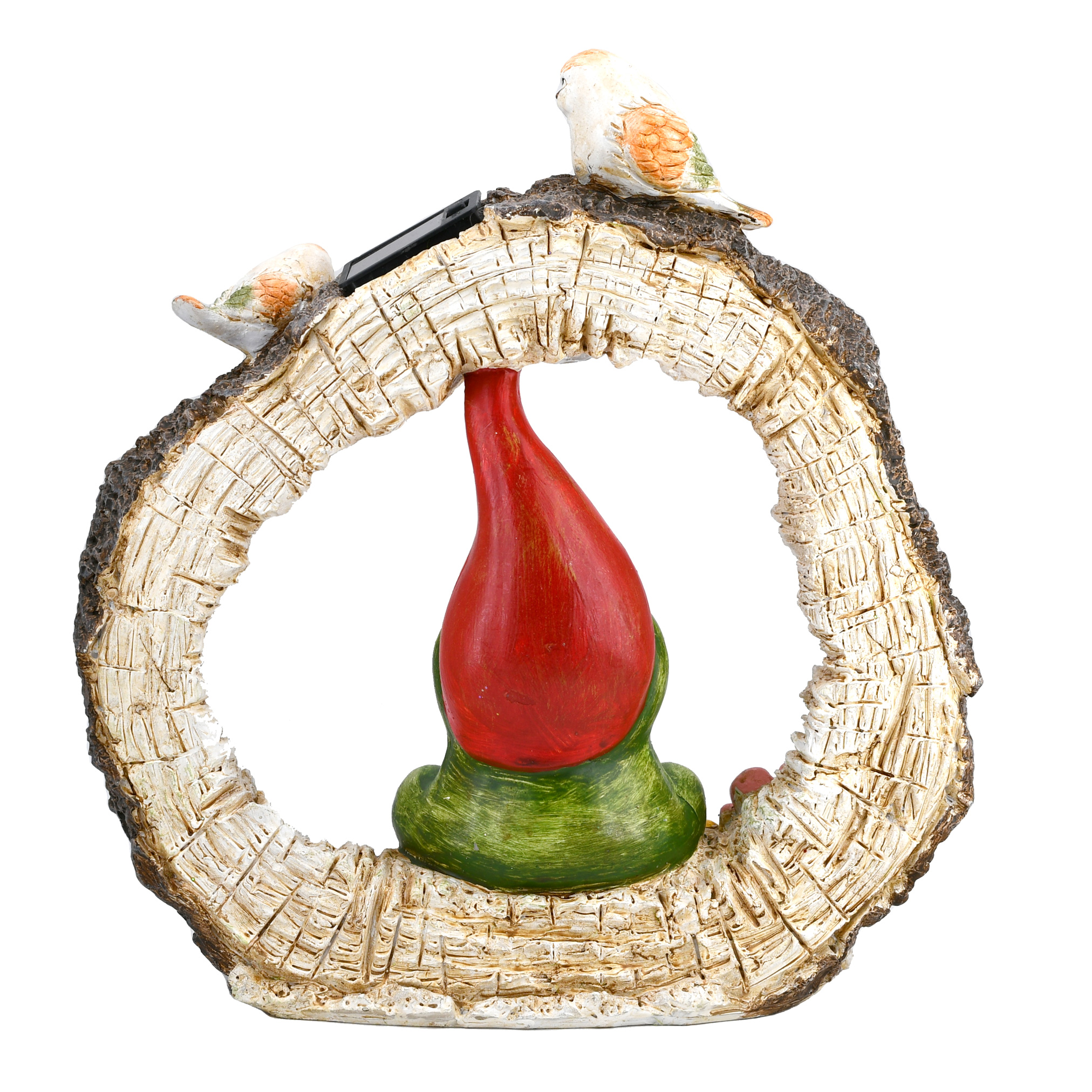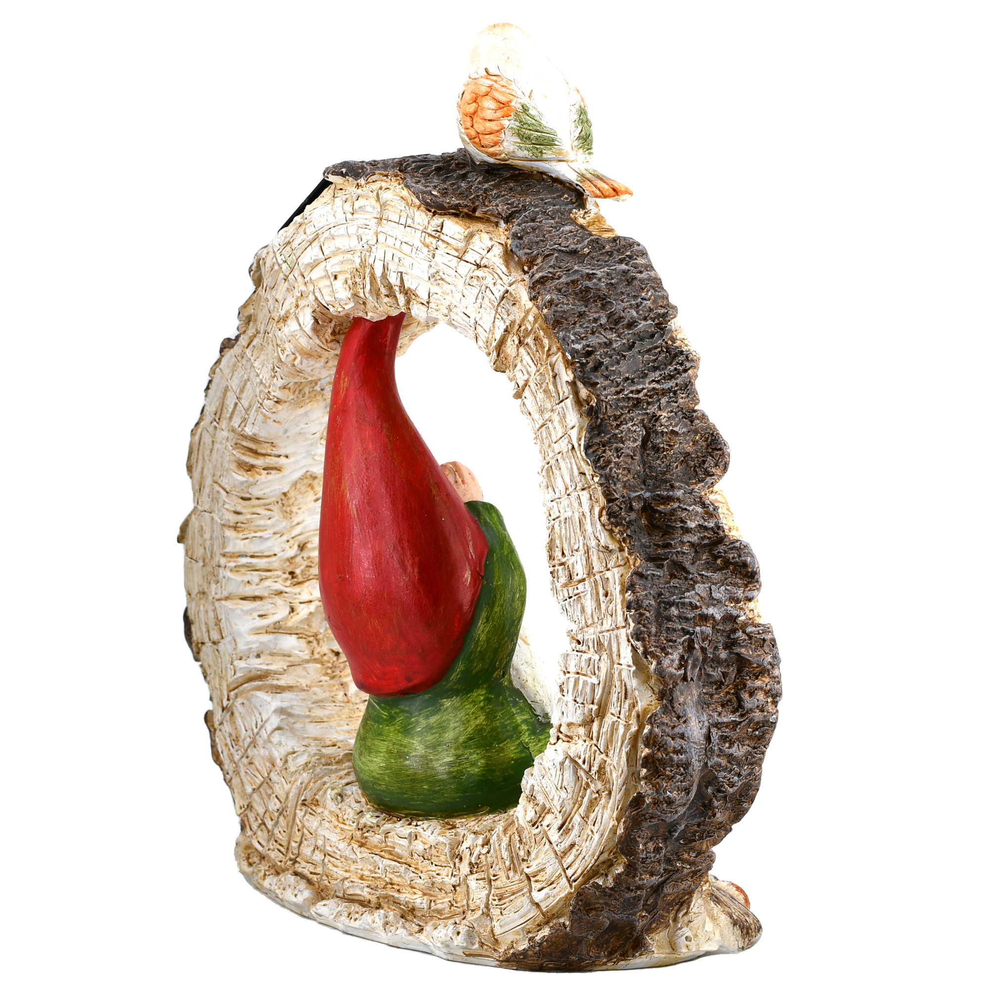 GARTENWICHTEL KERAMIKFIGUR STEHEND: Diese dekorative Gartendeko Figur in Form von einem charmanten Wichtel in Baumstamm ist aus strapazierfähigem Keramik und Magnesium gefertigt - somit robust, langlebig, wetterfest, perfekt für Außen