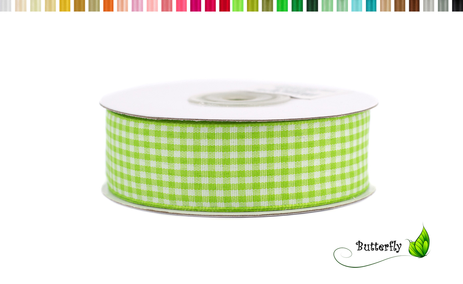 Vichy Karo Stoffband 25mm breit, 20m lang auf Rolle