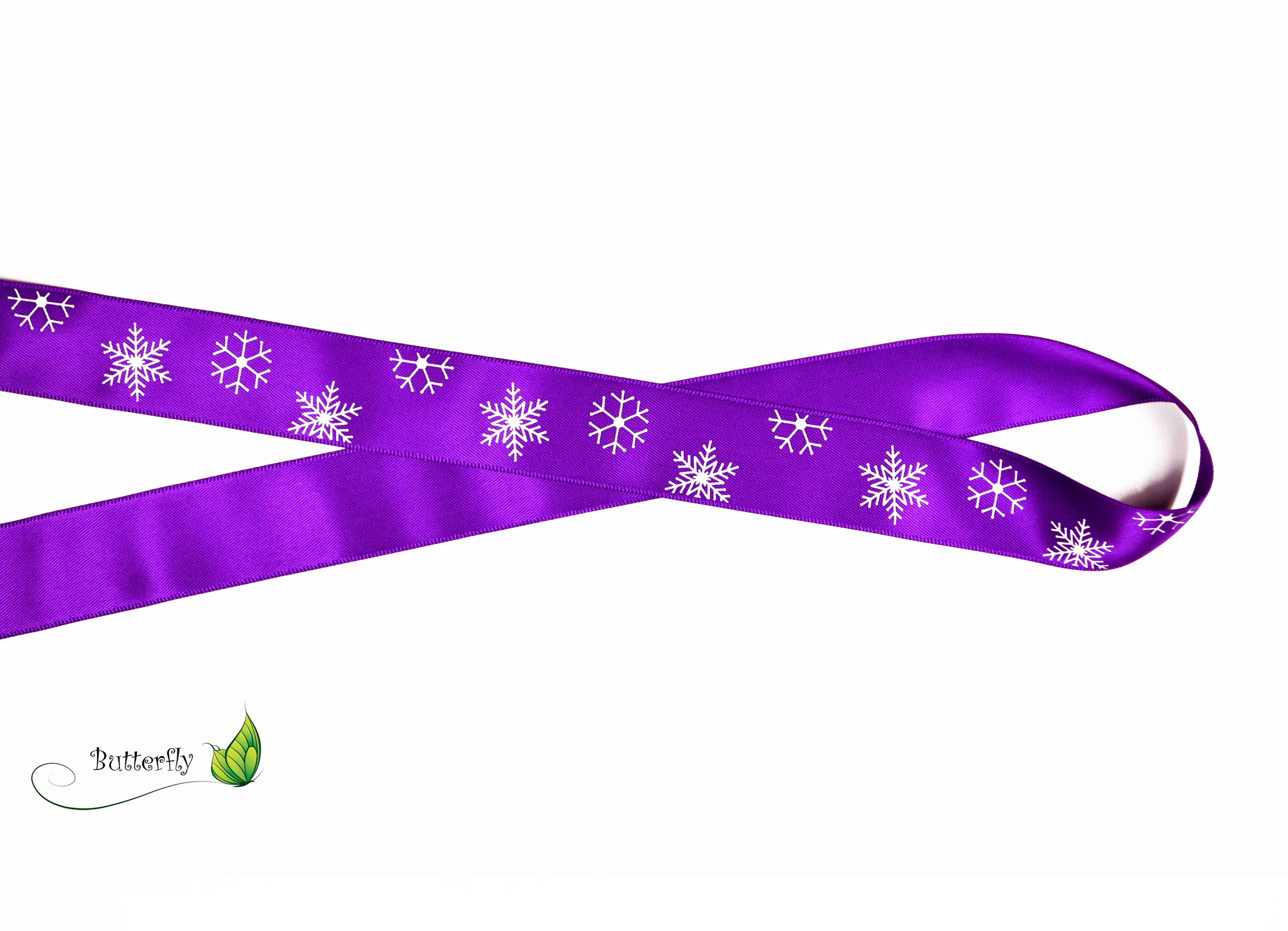 Satinband mit Weihnachtsmotive / Schneeflocken 25mm breit, 20m lang