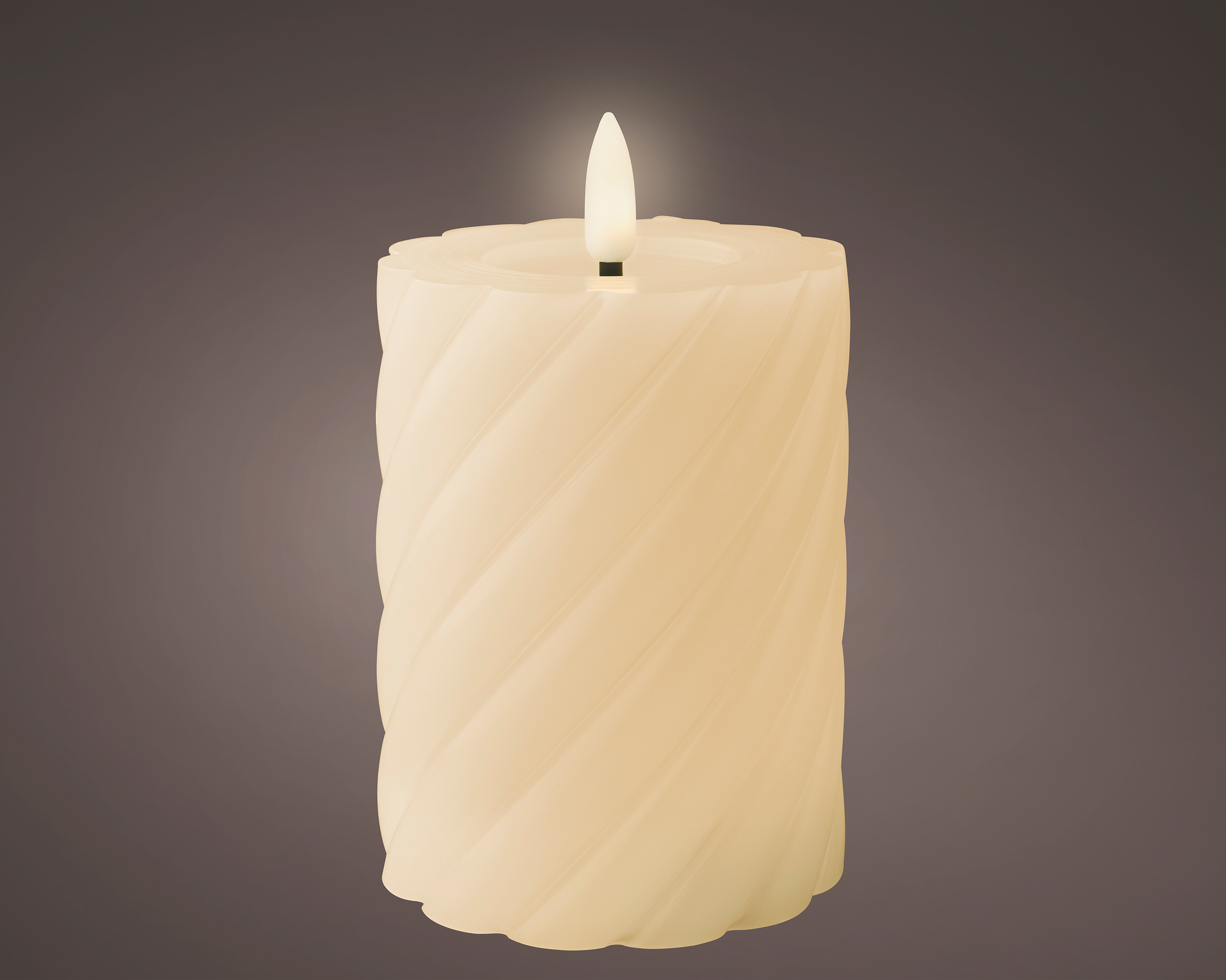 LED Kerze mit Timerfunktion 7,5x12cm gedreht Wachs Creme / Warmweiß