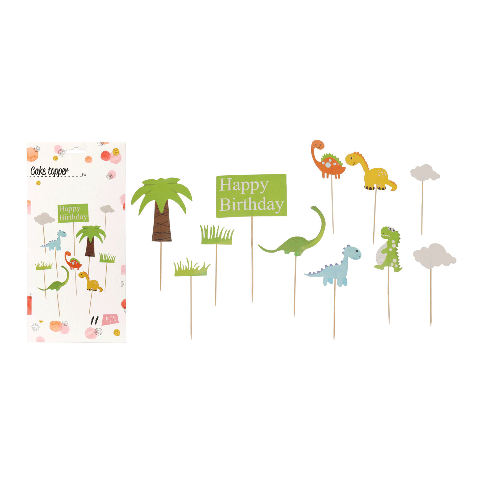 Cake Topper Happy Birthday mit Dinosaurier Kindergeburtstag 11er Set
