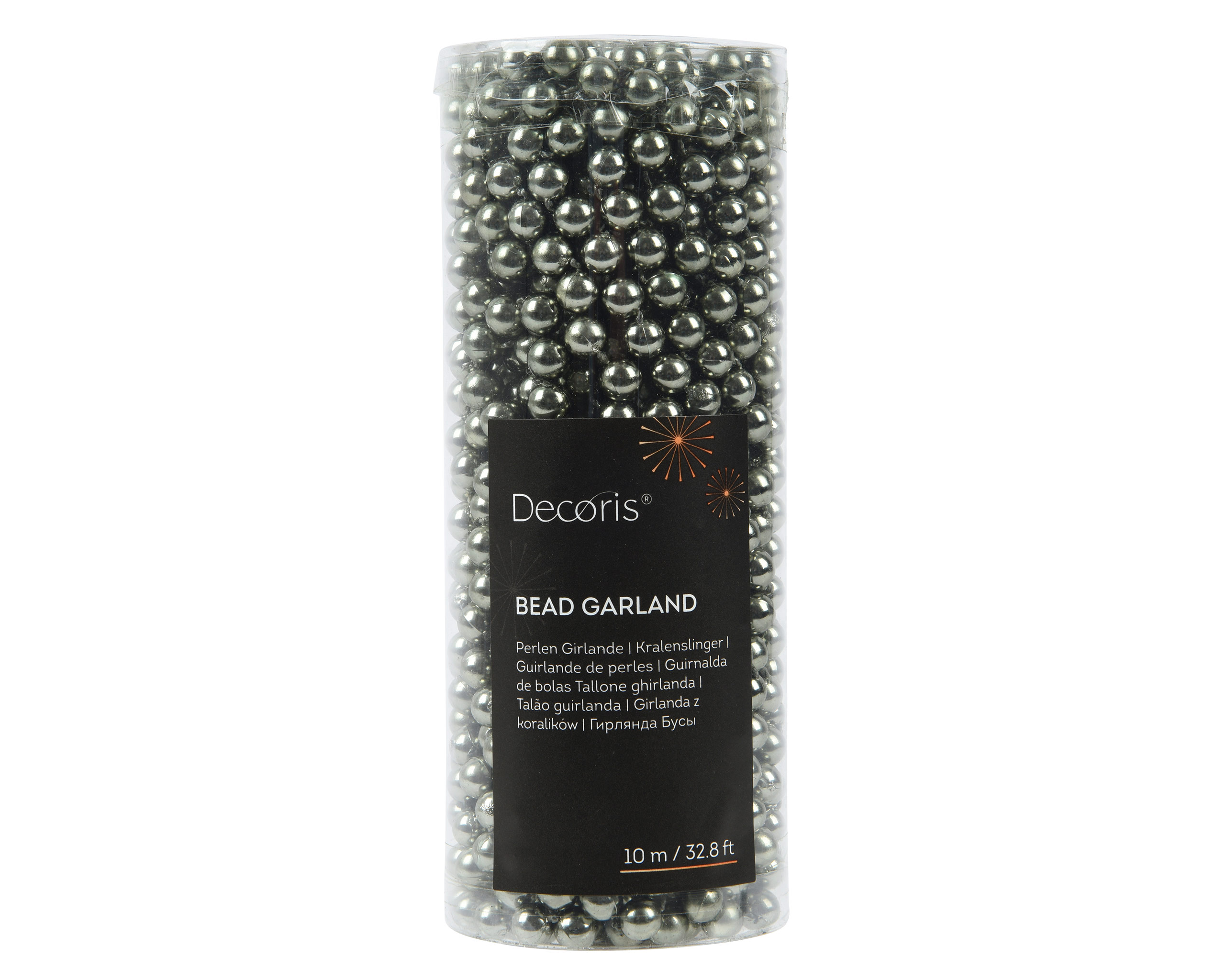 PRODUKT: Perlengirlande / DURCHMESSER: ca. 8 mm / LÄNGE: 10 m / MATERIAL: Kunststoff - Plastik / INHALT: 1 Deko - Perlenkette in der Dose / FARBTON: hellgrau - aschgrau - silbergrau - pastellgrau